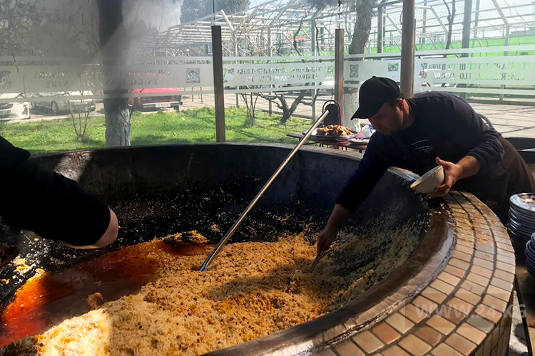 Какой же Ташкент без плова? Возле телебашни расположен центральноазиатский центр плова. Только здесь можно увидеть весь процесс приготовления плова в гигантских чугунных казанах на 800 человек. Самыми востребованными являются ташкентский праздничный и ферганский плов с рисом девзира. По желанию гостя добавляют казы-карта, яйца.