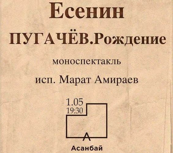 Постановка театра «Жас Сахна» (Алматы) в исполнении актера Марата Амираева. Мечтающий о воле крестьянин и воин Пугачев после долгих странствий приходит на Яик и в разговоре с казаком-сторожем узнает о том, что мужики ждут нового царя — мужицкого. Таким царем представляется убитый Петр III — он бы дал народу волю. Эта мысль захватывает Пугачева.