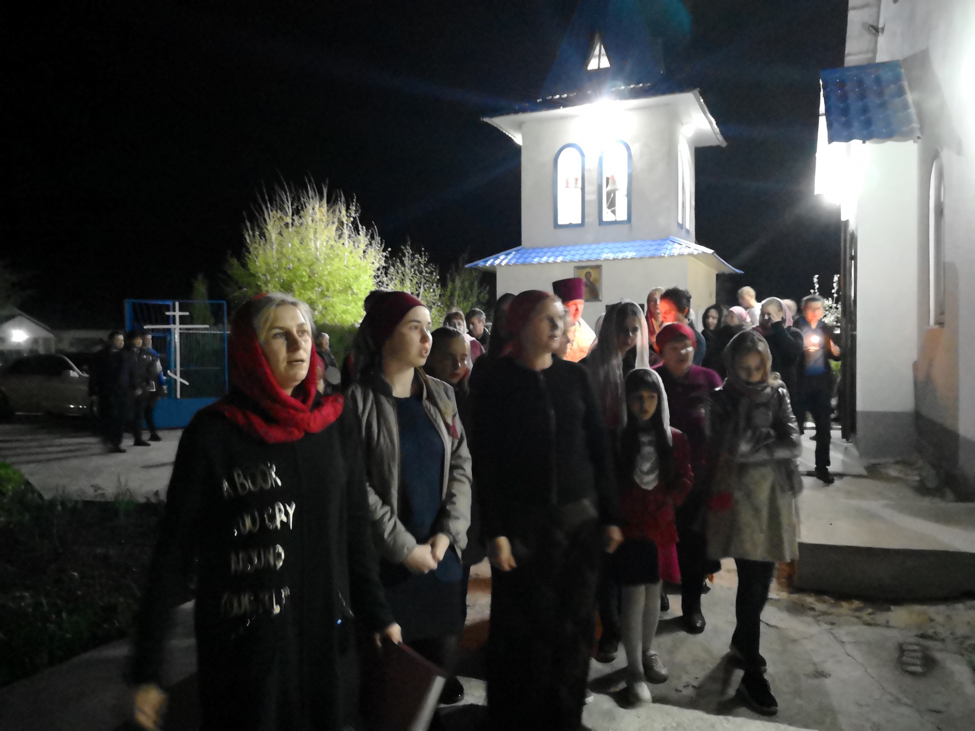 Ближе к полуночи служба в церкви прекращается. Освещение в храме гаснет, мерцают только свечи. Прихожане и служители церкви начинают выстраиваться для крестного хода вокруг храма.
