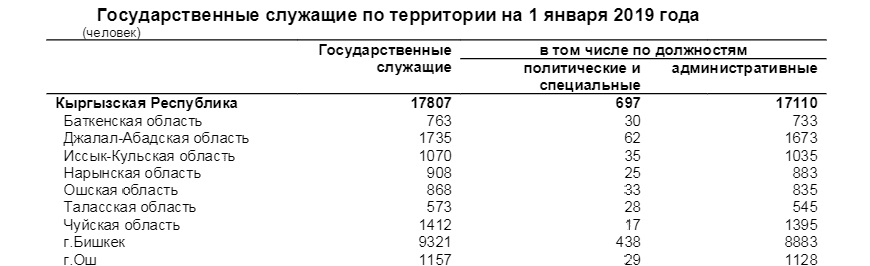В Кыргызстане подвели итоги учета государственных служащих и работников органов местного самоуправления. Об этом сообщила пресс-служба Национального статистического комитета.