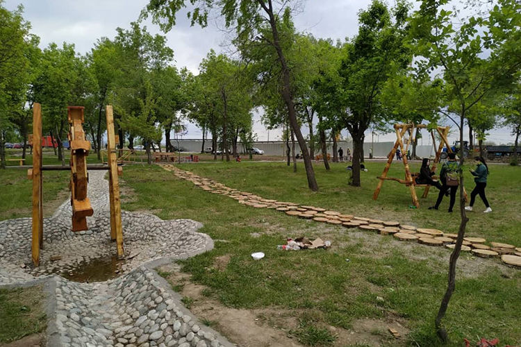 В Бишкеке, в сквере на пересечении улиц Анкара и Виноградной, появились трехметровые комузы, мельницы, скамейки, тропинка из пеньков и другие конструкции из дерева. Об этом сообщила пресс-служба мэрии.