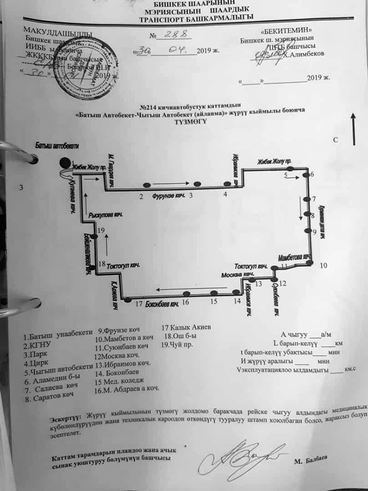 Маршрутное такси № 114 теперь курсирует от Западного автовокзала до Ошского рынка.