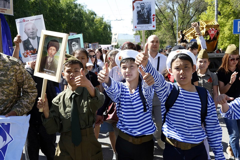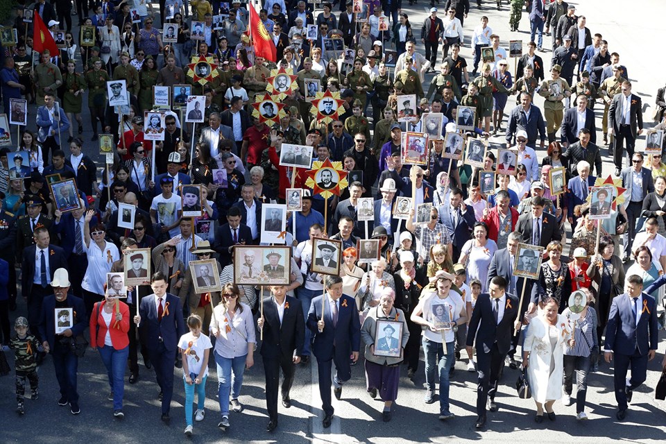 В руках у главы государства была фотография его деда — Жээнбека Пирназарова. Сооронбай Жээнбеков отметил, что «Бессмертный полк» — это вечная память о тех, кто отдал свою жизнь за Родину и пожелал мира на всей Земле и в Кыргызстане.