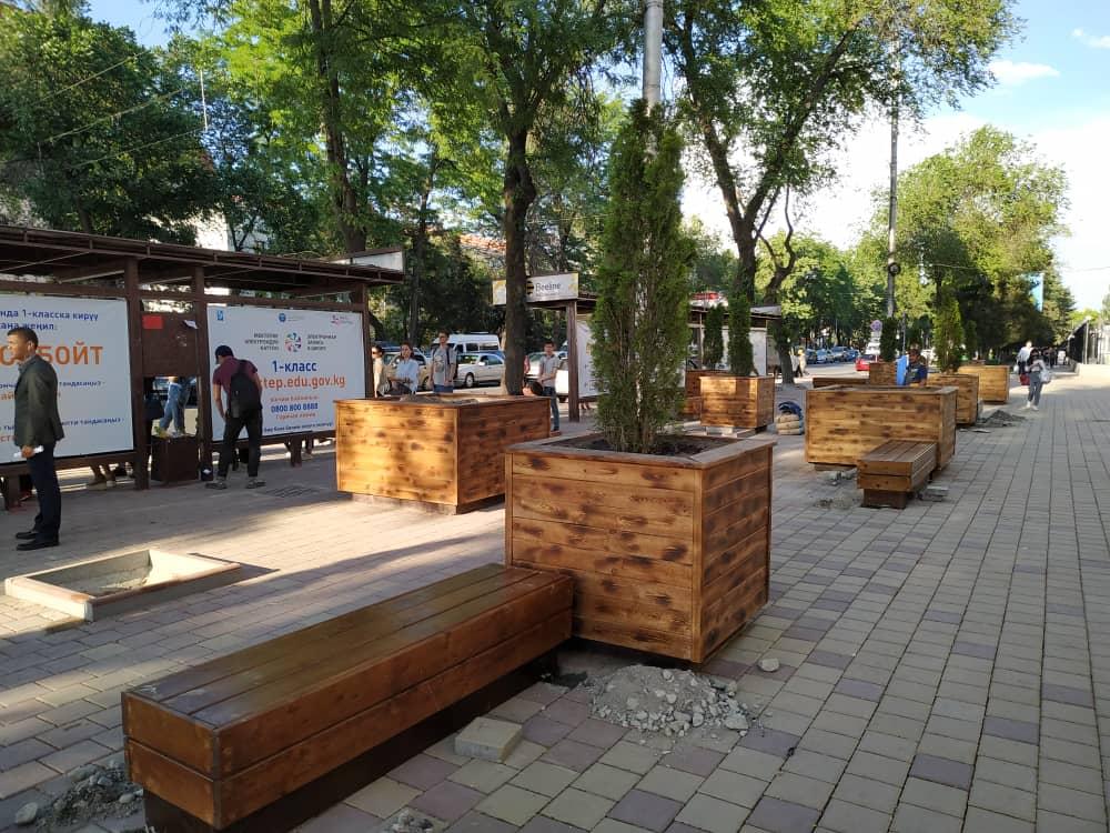 На пересечении проспектов Чуй и Манаса работники Бишкекзеленхоза установили 11 вазонов и еще два на Аллее молодежи с саженцами колоновидной туи. Планируется также высадить саженцы и лиственных пород деревьев.