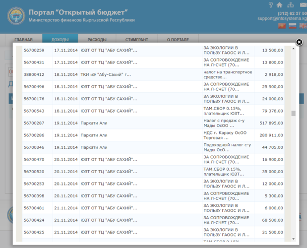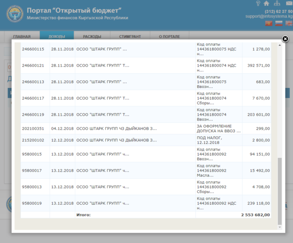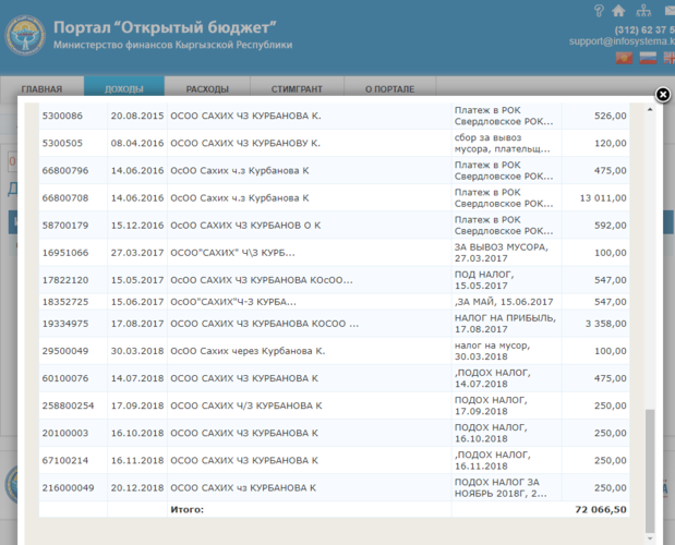 С 2013 по 2018 год ОсОО «Абдыраз» заплатило налогов на 430 миллионов 691,2 тысячи сомов.