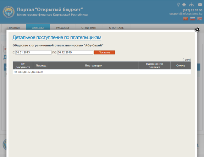 С 2013 по 2018 год представительство ОсОО «Торговая компания по импорту и экспорту «Абу-Сахий», Синьцзян» в Кыргызстане заплатило 75 миллионов 27,6 тысячи сомов налогов и платежей.