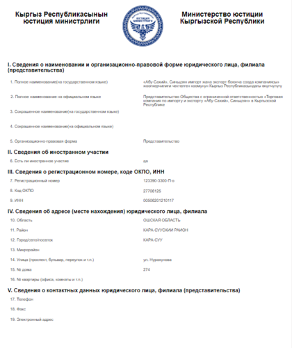 В базе данных Министерства юстиции Кыргызстана зарегистрированы две фирмы с названием «Абу-Сахий».