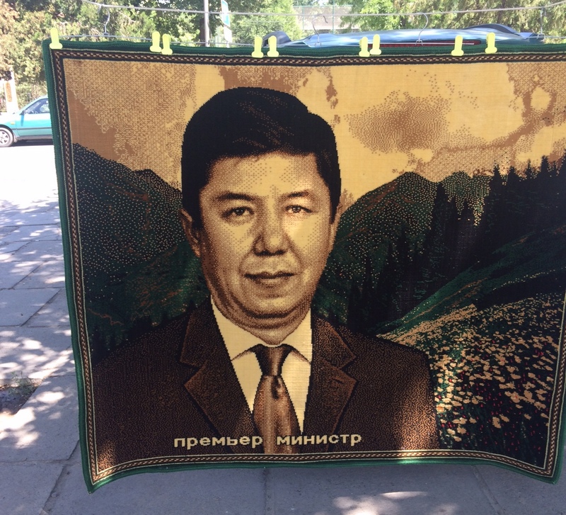 Портрет премьер-министра Кыргызстана выткали на ковре баткенские мастерицы. Внизу надпись о занимаемой Темиром Сариевым должности.
