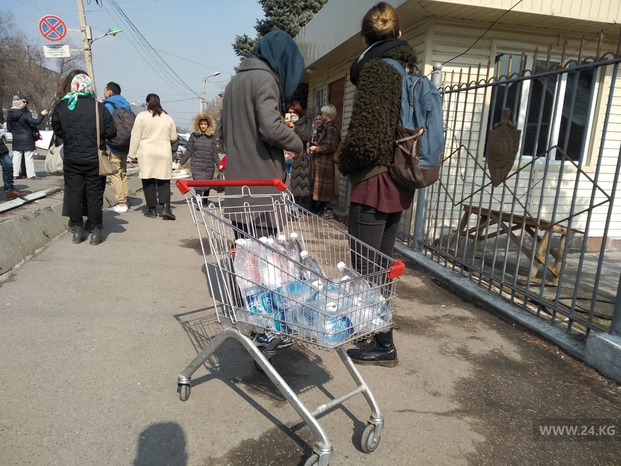 Родственники задержанных принесли воду, но им не позволяют передать ее.