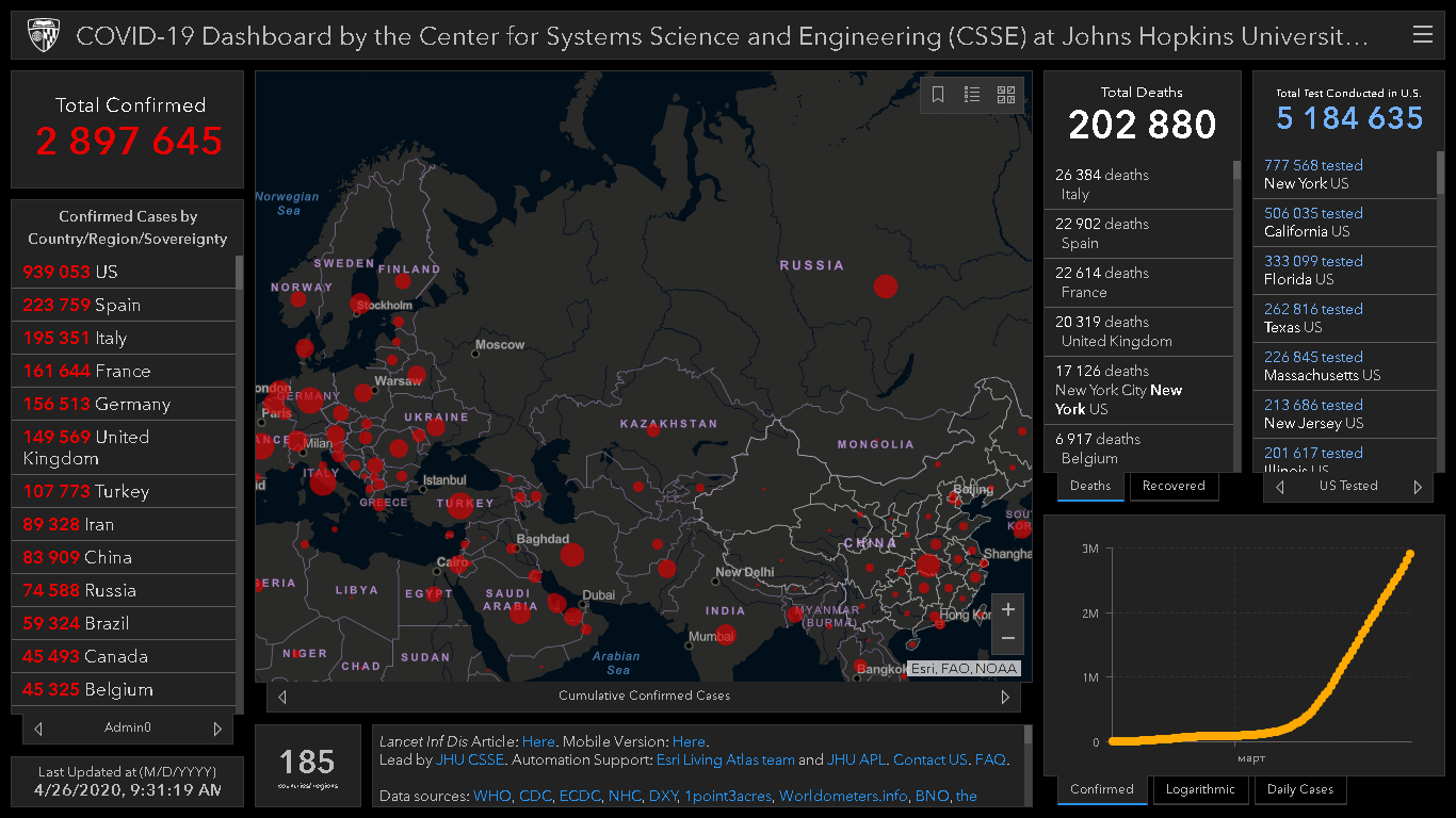На сегодня число людей, которые умерли после заражения коронавирусом, составляет 202 тысячи 880 человек. Об этом свидетельствуют данные онлайн-карты, разработанной учеными.