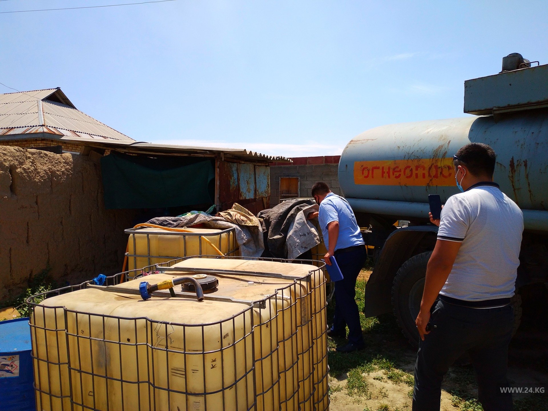 Сотрудники Финпола попросили хозяина дома дать возможность досмотреть бензовоз и проверить документы на содержимое. В случае отказа от добровольной проверки они будут вынуждены сделать это принудительно.