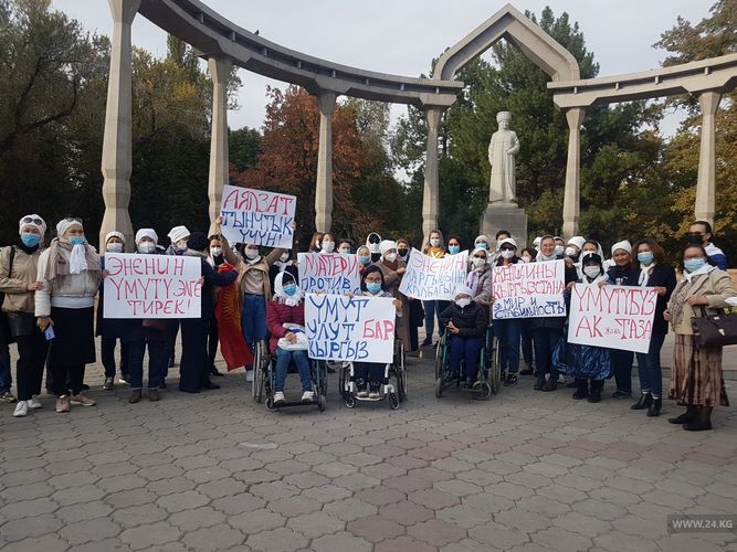 Матери и дочери Кыргызстана вышли на мирный марш «Белый платок» в память о погибшем 5 октября 19-летнем Алтынбек уулу Умутбеке.