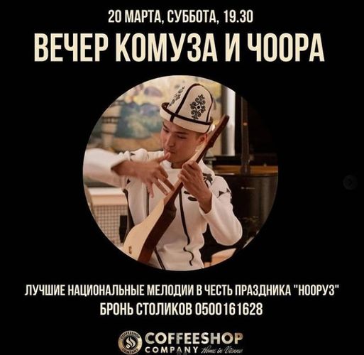 В преддверии Нооруза вас ждет вечер комуза и чоора. Играют Омургазы уулу Жыргалбек и Совет уулу Темирлан. Регистрация по телефону 0500161628.