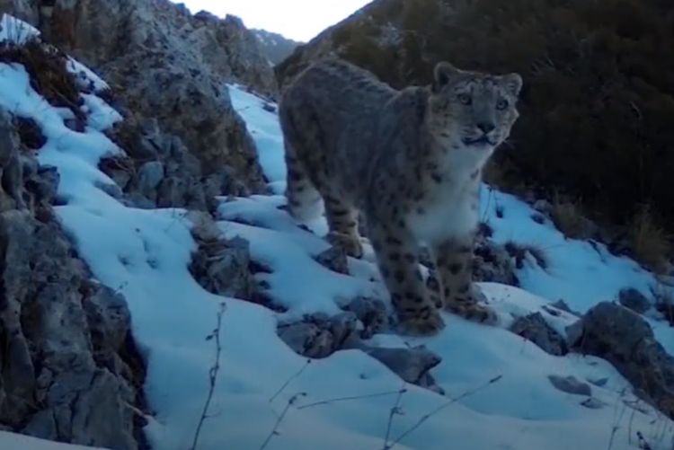 Уникальные кадры краснокнижного животного удалось зафиксировать в Аксу-Жабаглинском государственном природном заповеднике Казахстана. Как сообщает официальный Instagram министерств экологии, геологии и природных ресурсов РК, снежный барс попал в фотоловушку на высоте почти 3 тысячи метров над уровнем моря.