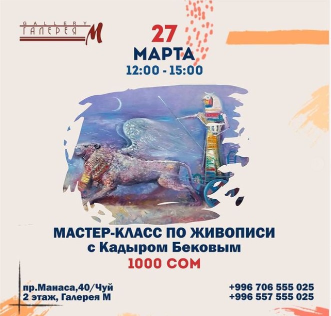Мастер-класс проведет художник Кадыр Беков. В стоимость включены материалы. Регистрация по телефону 0550551293.