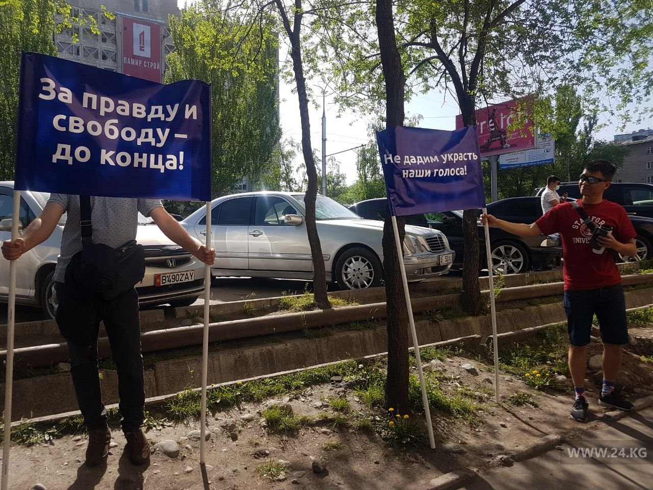 Сторонники партии НДПК митингуют у здания административного суда Бишкека.