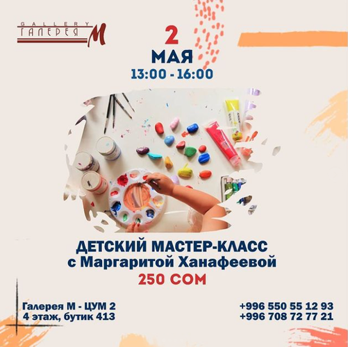 Интересные занятия каждое воскресенье проводит Маргарита Ханафеева. Ребенок получит ценный опыт от профессионала и рисунок. Запись по телефону 0550551293.