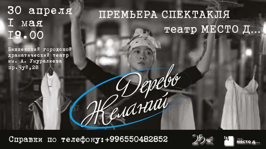 «Дерево желаний» — это размышления о старости в форме коллажа: импровизация, элементы пластического и документального театра. В основу постановки легли «лоскутки» из жизни реальных бишкекчанок 70+.