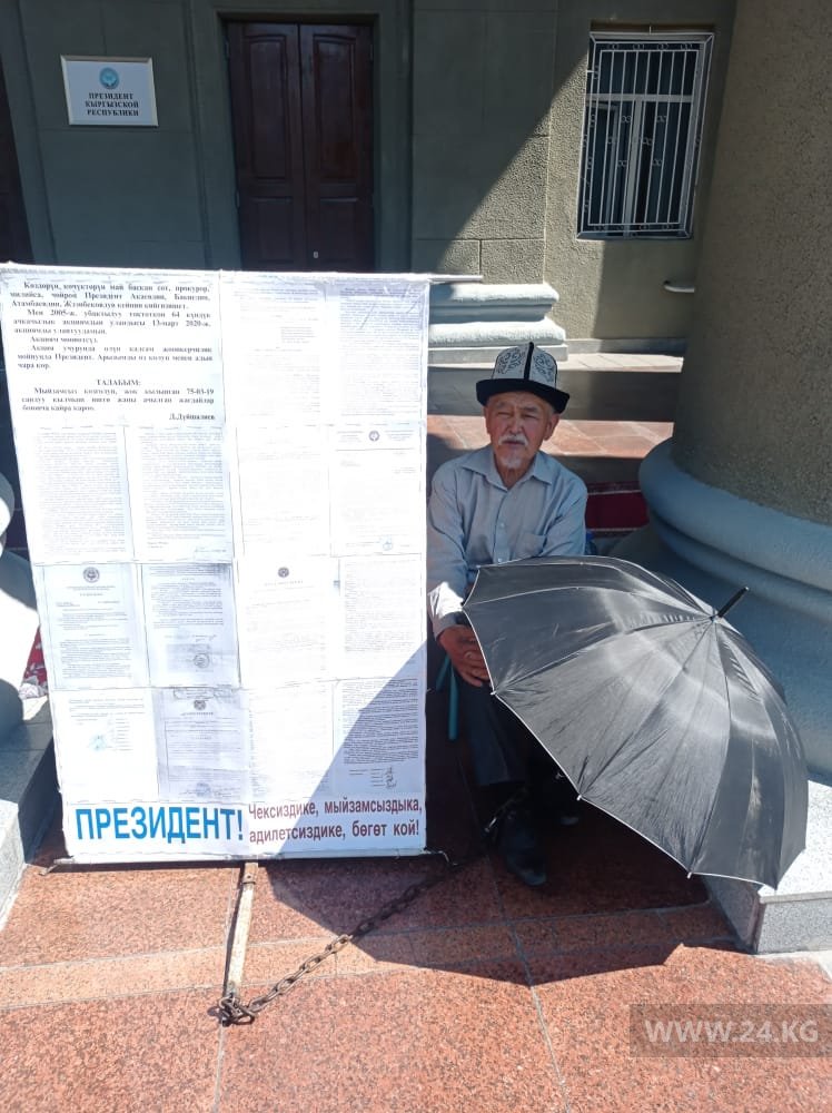 В Бишкеке у Дома правительства митингует 74-летний пенсионер Досумбай Дуйшалиев.