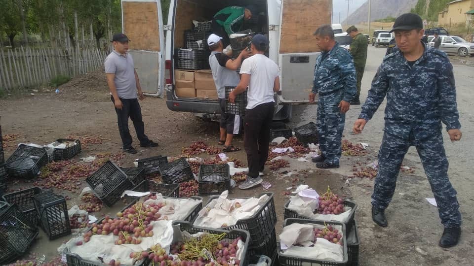 «Две грузовые машины направлялись с Лейлекского района в город Баткен. В них обнаружено 450 ящиков винограда. Водители назвали хозяином первой машины гражданина КР И.Насирова, второго они не знают. В данный момент мобильная группа силовых структур ведет работу», — сообщили в обладминистрации.