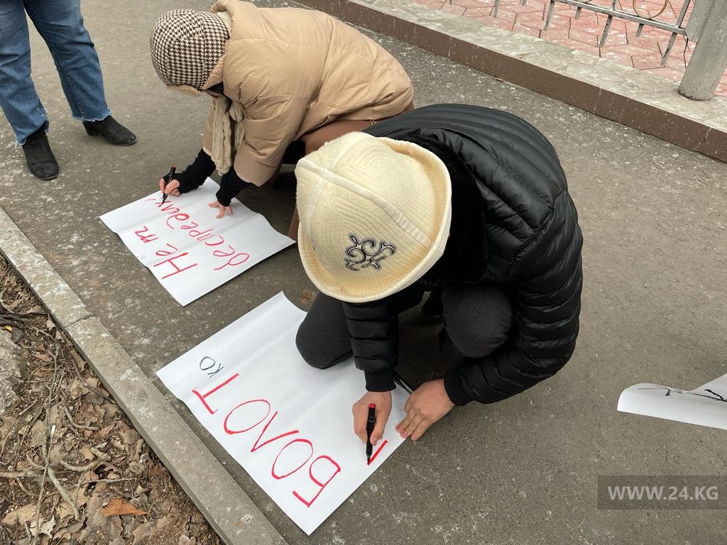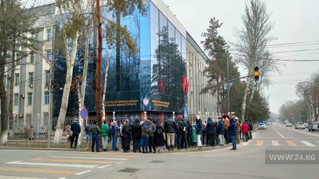 В Бишкеке у здания МВД проходит митинг в поддержку задержанного журналиста Болота Темирова. Собрались активисты, представители гражданского сектора и коллеги из других СМИ.