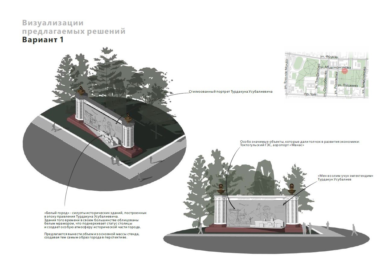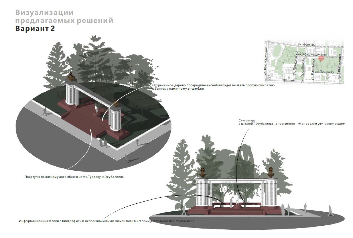 По ее данным, госучреждение разработало ряд предложений и эскизов по ревитализации (восстановлению городской среды, при котором она становится более пригодной для проживания. — Прим. 24.kg) центральной части города и территории, охватывающей площадь имени Турдакуна Усубалиева (Старая площадь), Дубовый парк имени Чингиза Айтматова, центральную площадь, а также улицы в этом районе и другие объекты и пространства.
