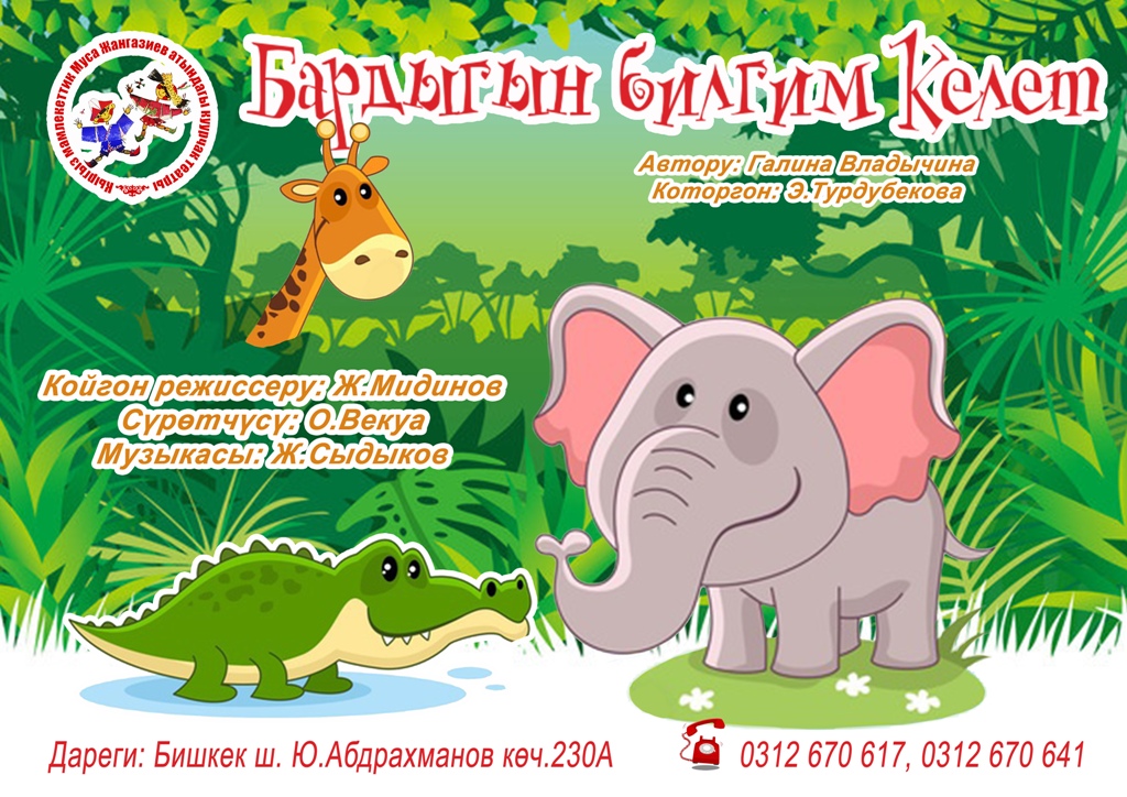 «Бардыгын билгим келет» («Хочу все знать») — постановка для самых маленьких зрителей, которым все интересно, хочется все узнать и понять, и они расспрашивают обо всем взрослых. По мотивам сказки Редьярда Киплинга о любопытном слоненке.