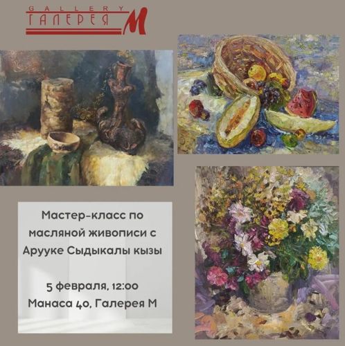 За три часа вместе с художницей Арууке Сыдыкалы кызы вы нарисуете живописный натюрморт на холсте. Обсудите, как создается работа, и на практике научитесь писать картину.