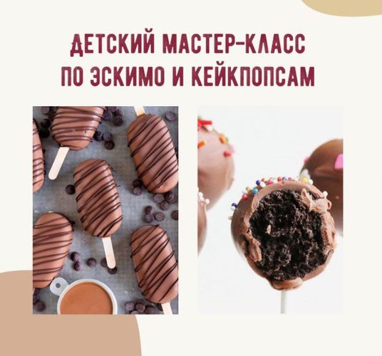 Под руководством опытного мастера дети сделают пирожные-эскимо и кейк-попсы. Малыши младше пяти лет могут участвовать со взрослыми.