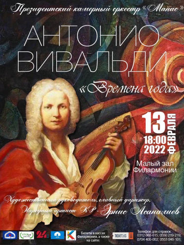 Президентский камерный оркестр «Манас» приглашает на концерт, посвященный Дню всех влюбленных. В программе прозвучат произведения Антонио Вивальди «Времена года» и другие не менее известные его работы.