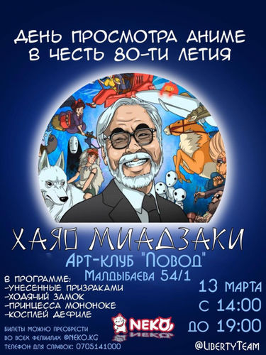 В программе показ сказки «Ходячий замок» на большом экране, квиз по аниме Хаяо Миядзаки, косплей-шоу, конкурс по артам, игры и конкурсы, встреча с интересными гостями.