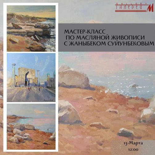 За три часа вместе с художником Жаныбеком Суйунбековым обсудите, как создается работа, и на практике научитесь писать картину.