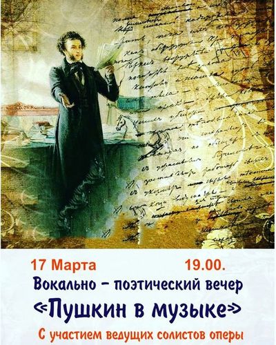 17 марта. Вокально-поэтический вечер «Пушкин в музыке»