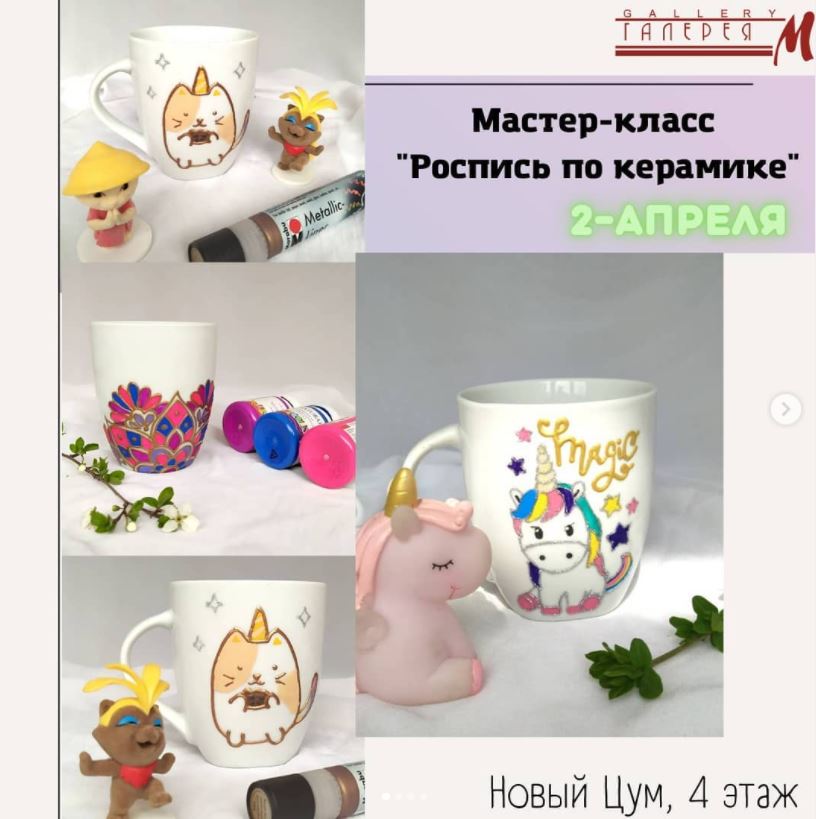 В субботу пройдет мастер-класс по росписи на кружке «Единорог» (на кружке), в воскресенье — по акварели. Регистрация по телефону 0708727721.