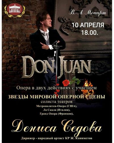 В основе сюжета произведения лежит старинная легенда о Дон Жуане — дерзком искателе приключений, смелом и ловком соблазнителе женщин. С участием приглашенного солиста театров «Метрополитен-опера», «Ла Скала», «Гранд-опера», «Ковент-Гарден» Дениса Седова (бас-баритон).