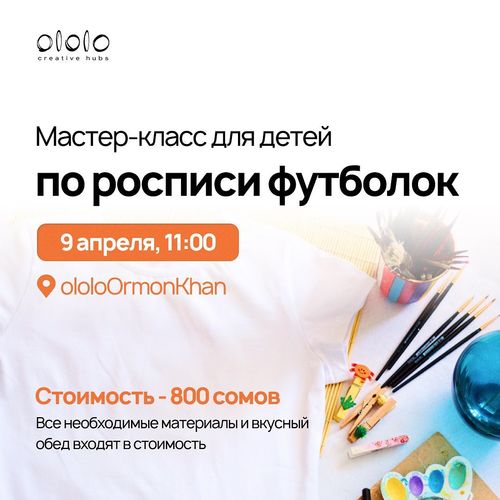 Дети смогут весело провести время, а родители приятно отдохнуть. С нас футболки, необходимые материалы и вкусная пицца. Регистрируйтесь по ссылке.