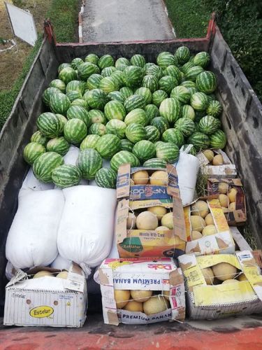 При досмотре автомобилей выяснилось, что три из них пустые, а в одной находился груз – арбузы, дыни в коробках и более 20 мешков риса. У водителя отсутствовали документы на груз.