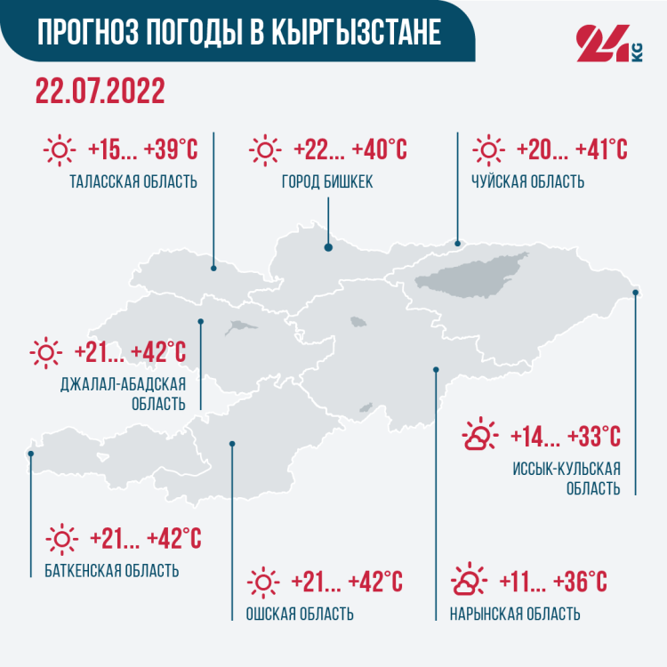 Напомним, в Кыргызстане с 20 по 25 июля ожидается аномально жаркая погода.