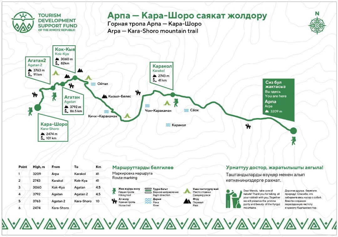 Длина экологической тропы Арпа — Кара-Шоро составляет