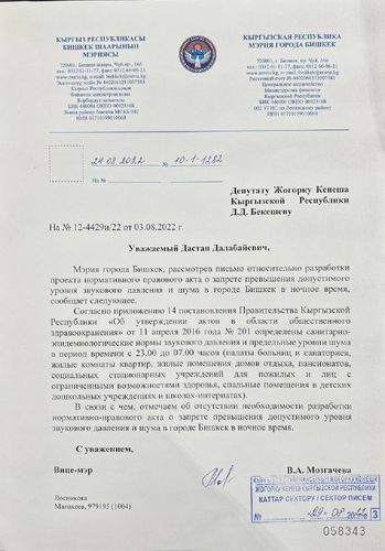 Депутат Дастан Бекешев объяснил в своем Telegram-канале, почему мэрия Бишкека не будет принимать акт о тишине в ночное время.