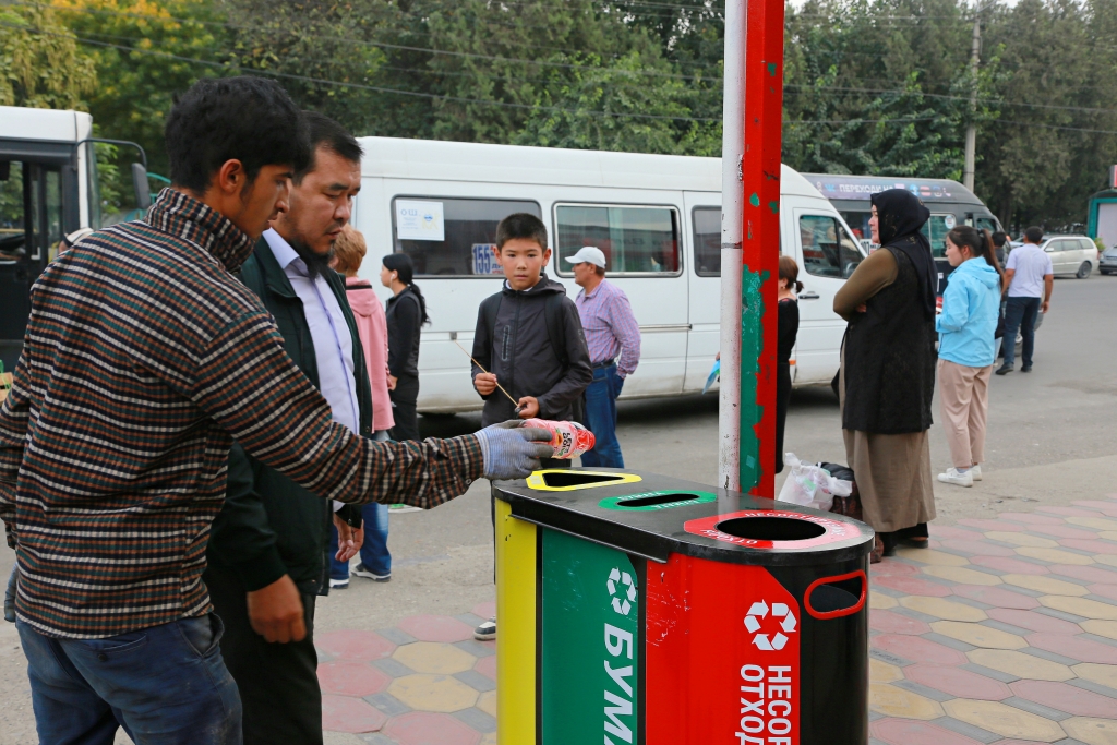 В Оше начали установку новых сортировочных урн СМП «Ош-Тазалык» для раздельного сбора мусора. Об этом сообщила пресс-служба мэрии города.