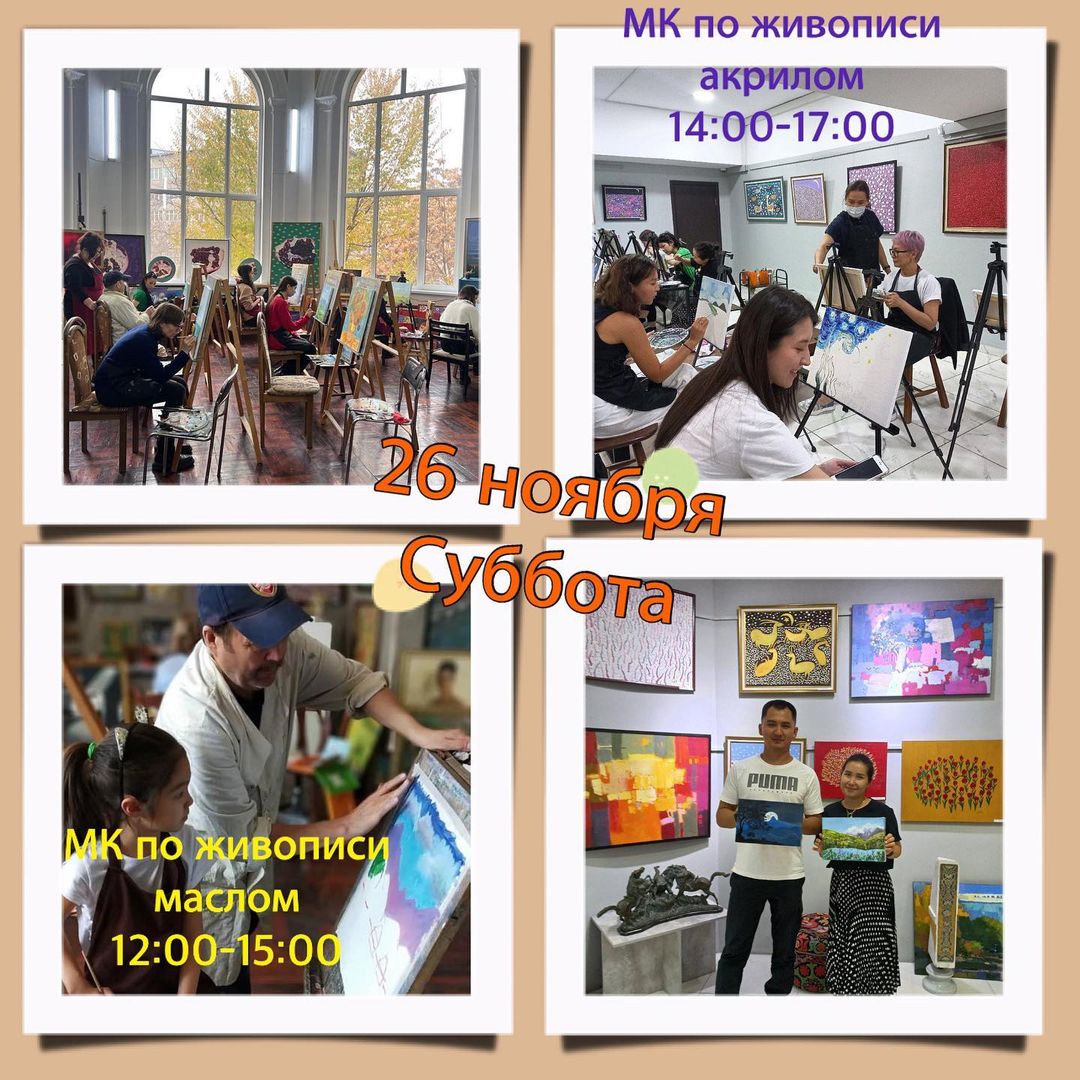 Вы напишете настоящую картину маслом с художниками Кадыром Бековым и Марией Степаненко, акрилом — с Зульфией Акимовой.