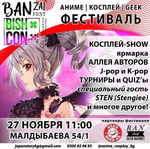 Любите аниме и косплей или вам по душе гик-тусовка? В Бишкеке пройдут сразу два фестиваля в одном — «Банзай» — самый масштабный в Кыргызстане фестиваль аниме и косплея и новый проект современной гик-культуры BISHCON.