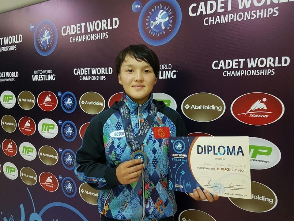 Девушка с 13 лет занимается вольной борьбой. За это время она стала чемпионкой Кыргызстана, победителем ряда международных соревнований и призером чемпионата мира по вольной борьбе.