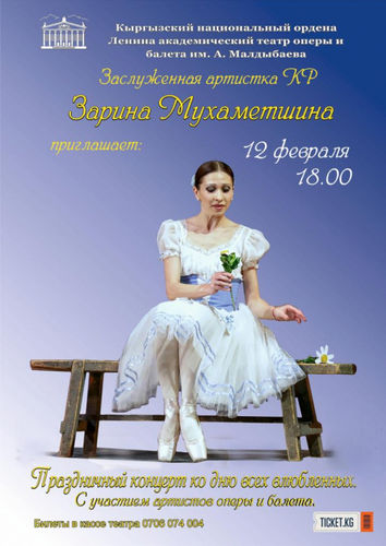 Творческий вечер солистки балета, заслуженной артистки КР Зарины Мухаметшиной с участием солистов и артистов балета, солистов оперы, симфонического оркестра театра. Дирижер — Захар Бутенко.