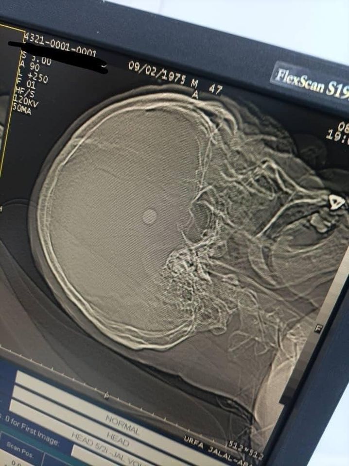 По его данным, пациент поступил с открытым проникающим ранением головы — пуля находилась в лобно-височной доле справа.