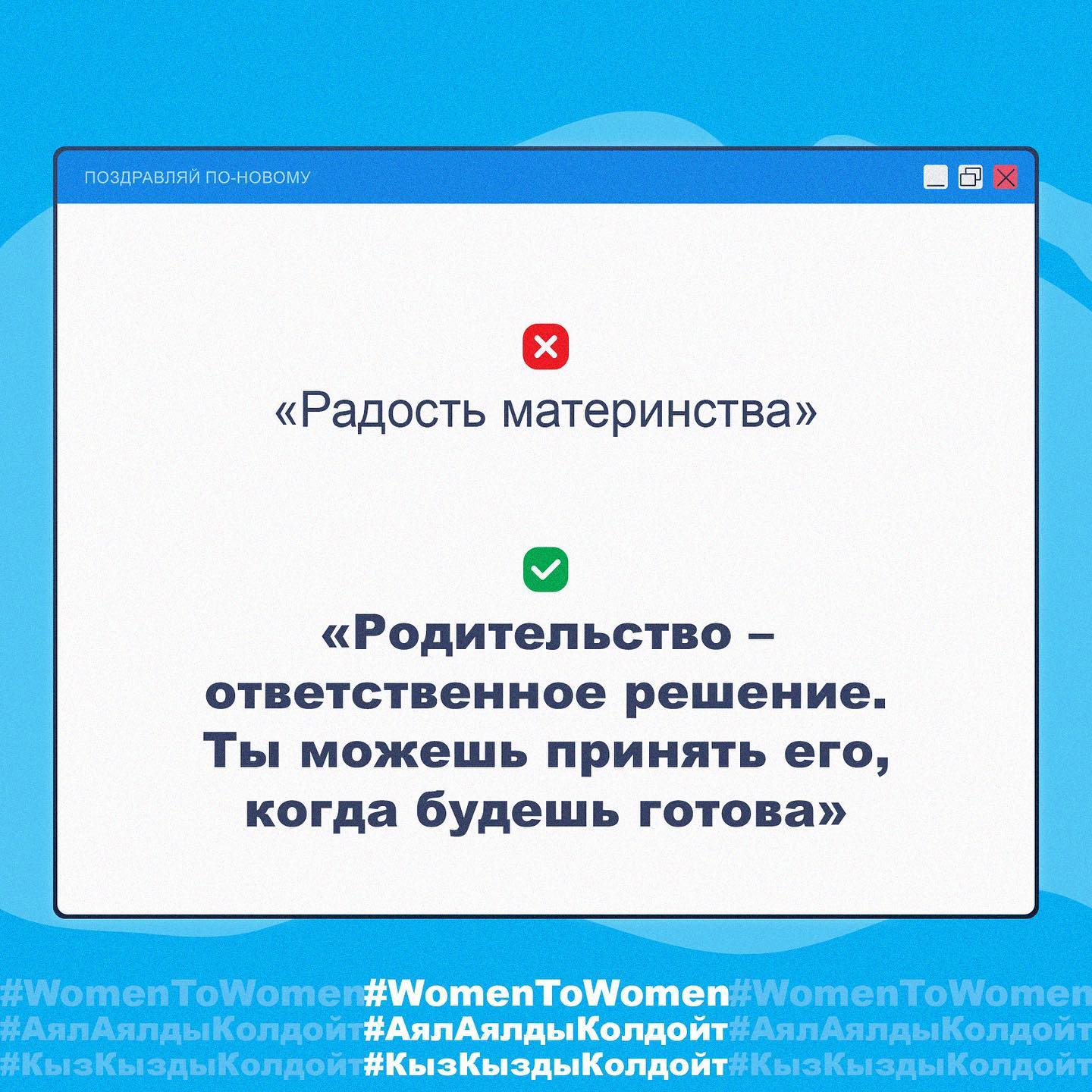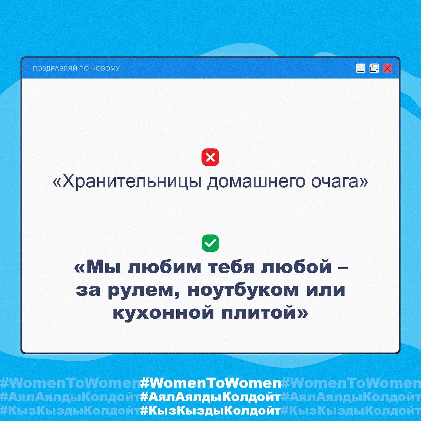 «Уже завтра мы будем праздновать 8 Марта. Предлагаем вам пересмотреть шаблонные поздравления, которые женщины получают из года в год», — заявили в представительстве ЮНИСЕФ в Кыргызстане.
