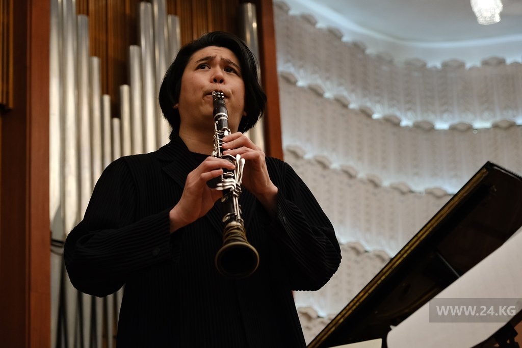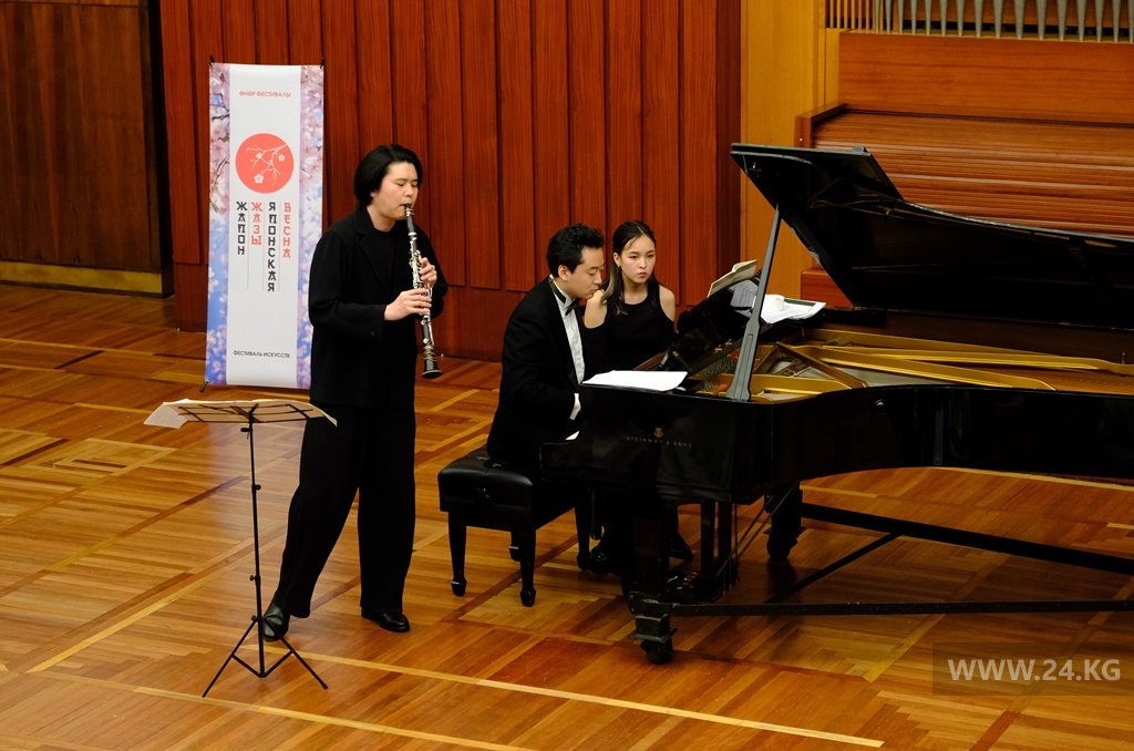 На сцене Кыргызской национальной филармонии имени Токтогула Сатылганова выступили музыканты из Японии — дуэт Макото Йошида (кларнет) и Рютаро Судзуки (фортепиано).