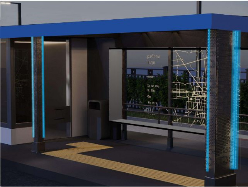 По ее данный, он будет с системой кондиционирования в жаркое время года и обогревом зимой. Там будет установлен стенд с маршрутами общественного транспорта, рекламный лайт-бокс, информационный светодиодный LED-экран.