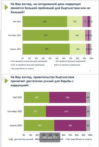 При этом 38 процентов ответили, что власти делают достаточно для борьбы с коррупцией. В сентябре 2022 года этот показатель был ниже — 33 процента. В апреле 2022-го похвалили чиновников за борьбу с коррупцией 46 процентов.